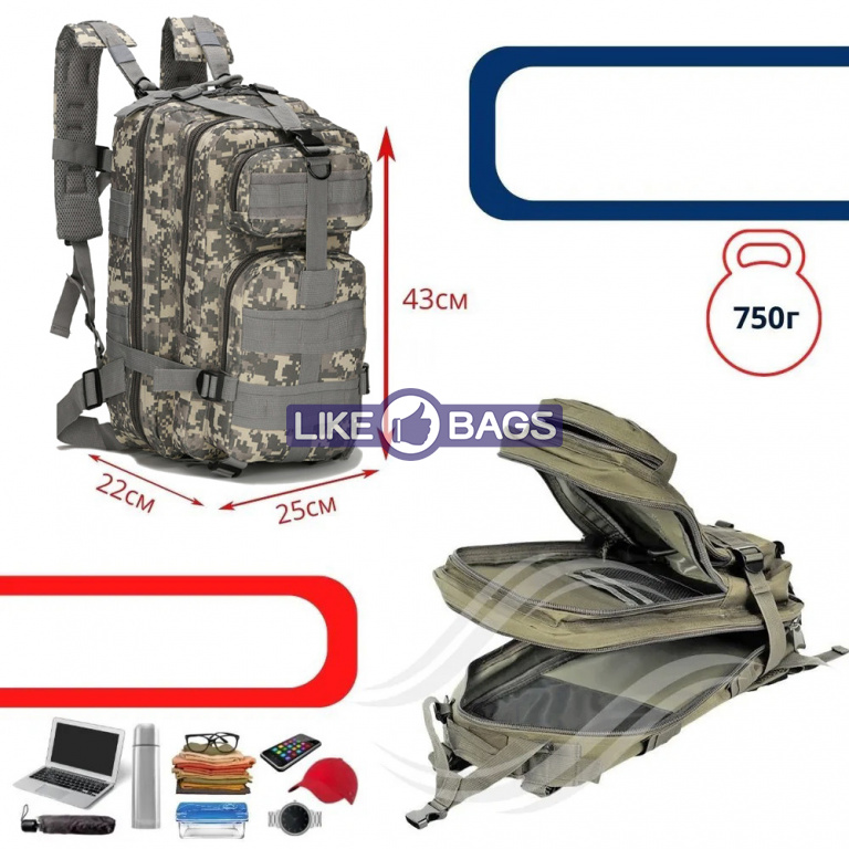Цей тактичний рюкзак стане чудовим вибором для туристів, військових, спортсменів і всіх, хто цінує функціональні та довговічні речі. Міцний матеріал та стильний, універсальний дизайн підкреслюють вашу готовність до будь-яких умов і завдань.