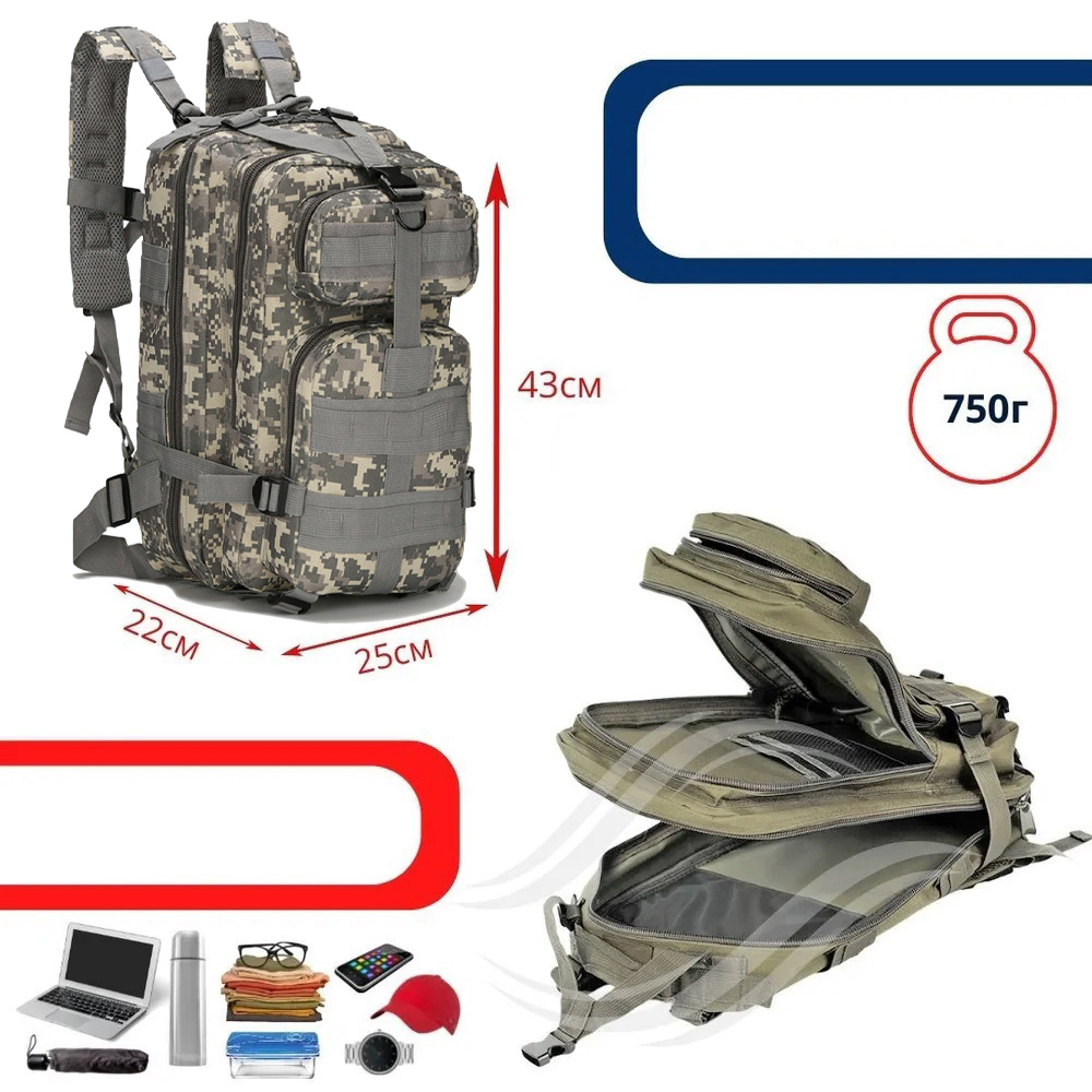 Цей тактичний рюкзак стане чудовим вибором для туристів, військових, спортсменів і всіх, хто цінує функціональні та довговічні речі. Міцний матеріал та стильний, універсальний дизайн підкреслюють вашу готовність до будь-яких умов і завдань.