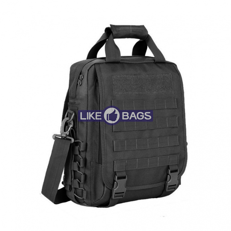 Передня панель сумки обладнана клапаном, який приховує практичну кишеню на блискавці. Це зручне місце для зберігання дрібниць, що потребують швидкого доступу — ключі, документи, смартфон. Сам клапан оснащено системою кріплення MOLLE — універсальним рішенням для закріплення додаткового спорядження. За допомогою строп ви можете доповнити комплект індивідуальними підсумками, ножами, ліхтариками або іншим корисним оснащенням, адаптуючи сумку під власні потреби.