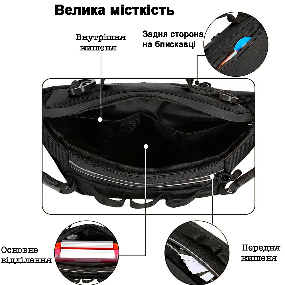 Тактична сумка Discovery B520 у насиченому чорному кольорі – це квінтесенція практичності, розроблена для тих, хто цінує легкість, миттєвий доступ до вмісту та безкомпромісний захист своїх речей. Ця модель стане незамінним елементом спорядження в найрізноманітніших умовах: від повсякденних міських маршрутів до виїздів на природу чи виконання специфічних завдань. Її компактність у поєднанні з багатофункціональністю робить її ідеальним вибором для активних і динамічних людей, які шукають оптимальне рішення для транспортування необхідного.