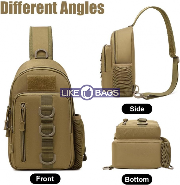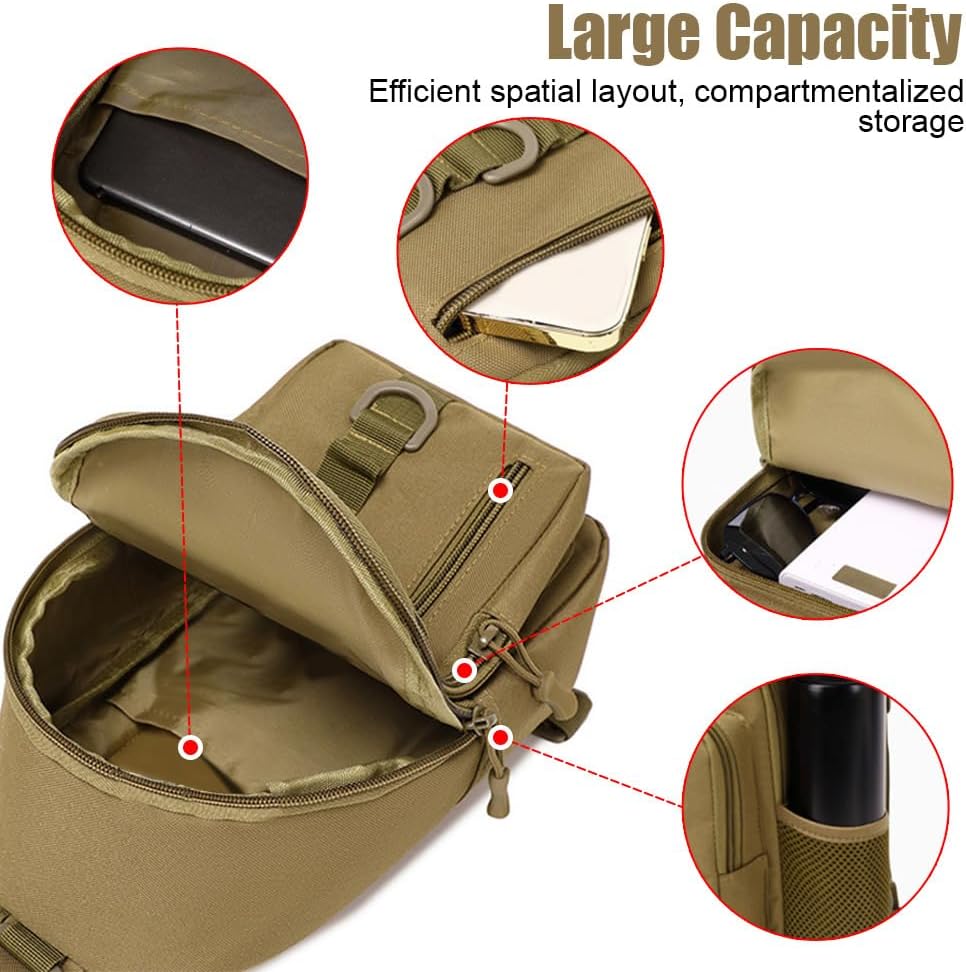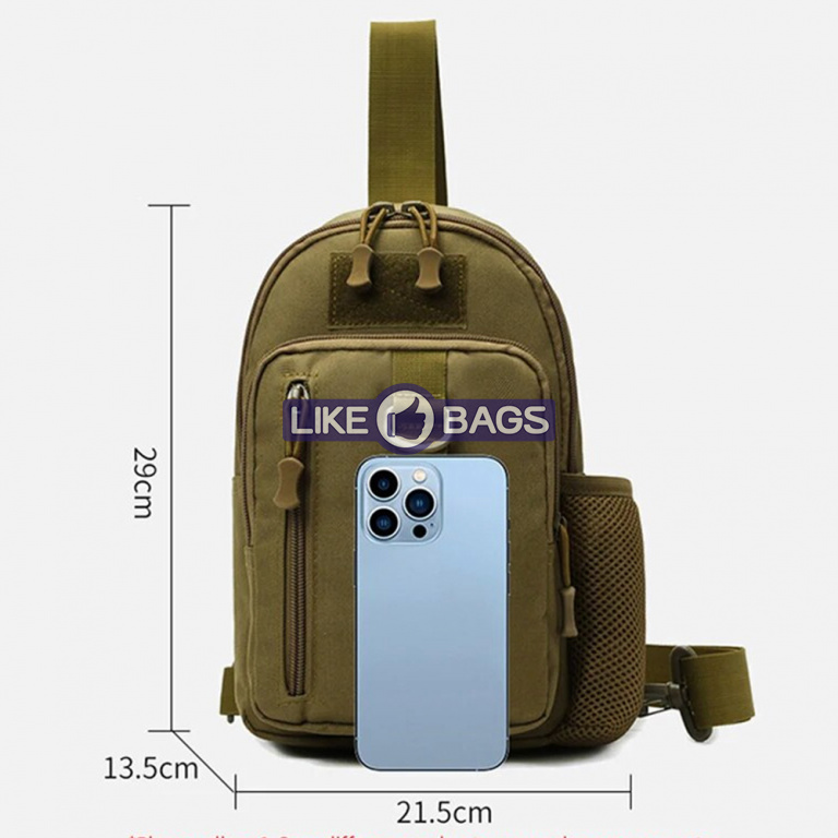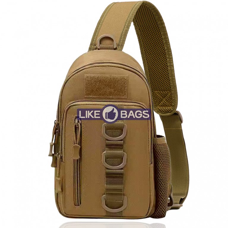 Збоку армійської сумки знаходиться відкрита сітчаста кишеня, ідеальна для невеликої пляшки з водою або термочашки, що забезпечує швидкий доступ до напоїв. Попри свої компактні розміри, ця військова сумка вміщує все потрібне, не обмежуючи при цьому рухів, що є критично важливим для активних людей.